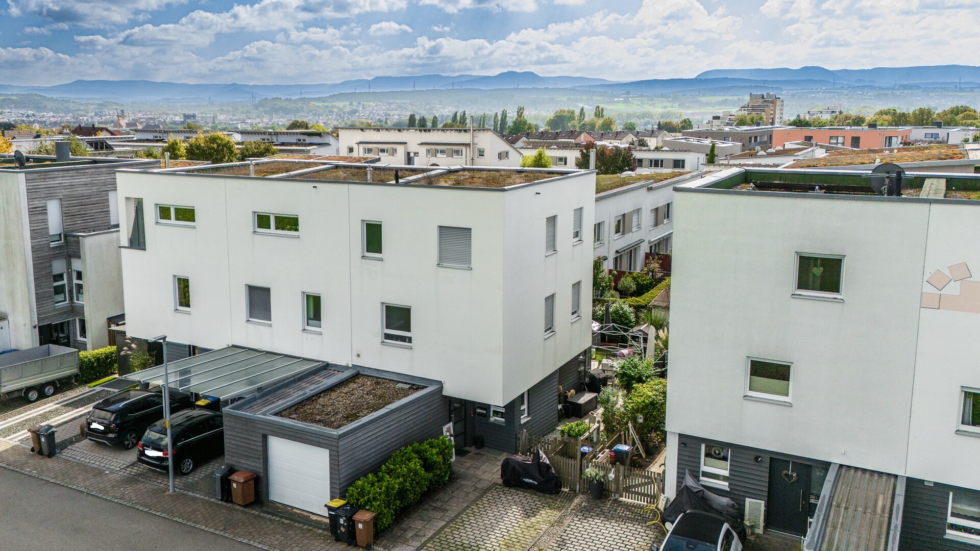 Im Dachgeschoss erwartet Sie ein geschmackvoll gestaltetes Gästebad sowie der absolute Höhepunkt des Hauses: eine ca. 15 m² große Dachterrasse mit atemberaubendem Blick auf die schwäbische Alb. Der vollständig geflieste Keller bietet mit seiner praktischen Waschküche und der komplett ausgestatteten Küchenzeile zusätzlichen Nutzraum.